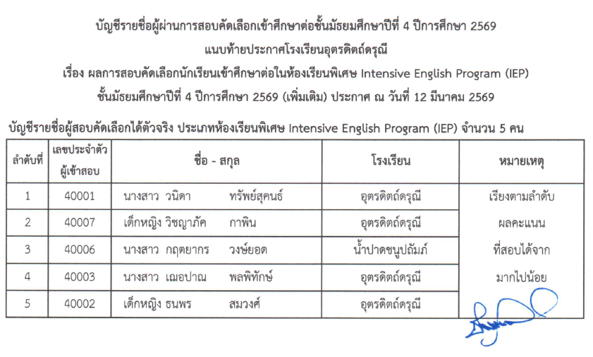 รับสมัครนักเรียน โครงการห้องเรียนพิเศษภาษาอังกฤษ (IEP) ม.4 ปีการศึกษา 2569 (เพิ่มเติม)